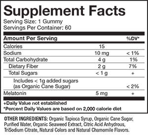 You’ll enjoy getting to sleep with these gummies, which feature a natural chamomile flavor, very low sugar, and a robust 5mg of Melatonin. In addition, they are non-GMO, and gluten-free.
